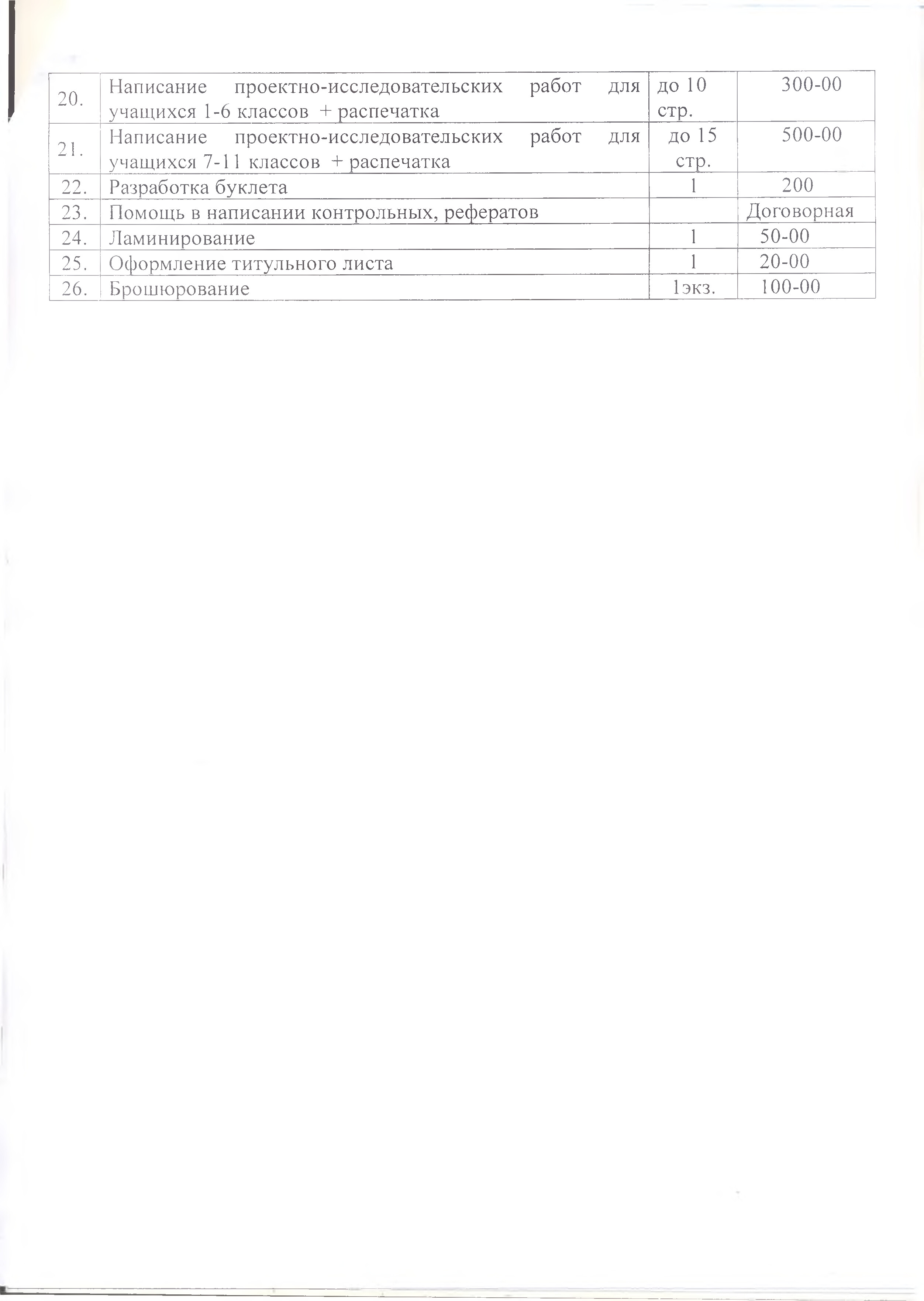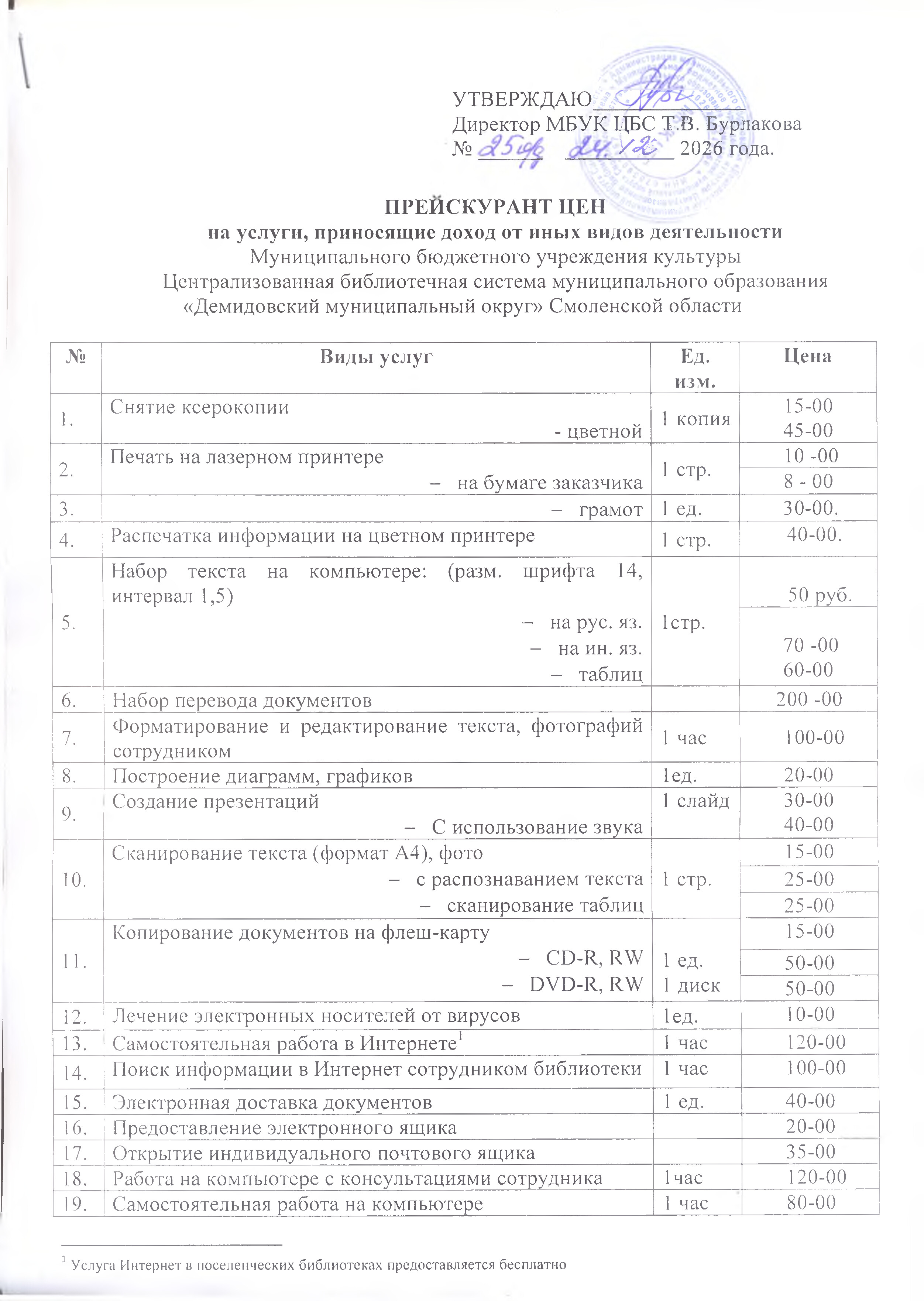 СКАЧАТЬ: Приказ, Прейскурант цен