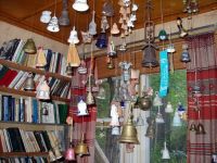 Окуджава долгое время был в опале, за границу его не выпускали. Когда же запрет был снят, он много ездил и привозил гравюры на память – они тоже висят в гостиной на стенах (Германия, Турция, Канада, Израиль). И из всех стран и поездок он привозил стихи, посвященные этим местам. Окуджаву очень любят японцы. Поют его песни, переводят стихи. Над столом на рыболовных крючках висит много колокольчиков. Они повсюду в доме, не только в кабинете. Первый подарила Белла Ахмадулина. К нему она приложила записочку: когда барин захочет призвать своего слугу, вы позвоните, и я к вам прибегу. С этого пошла традиция дарить Окуджаве колокольчики.