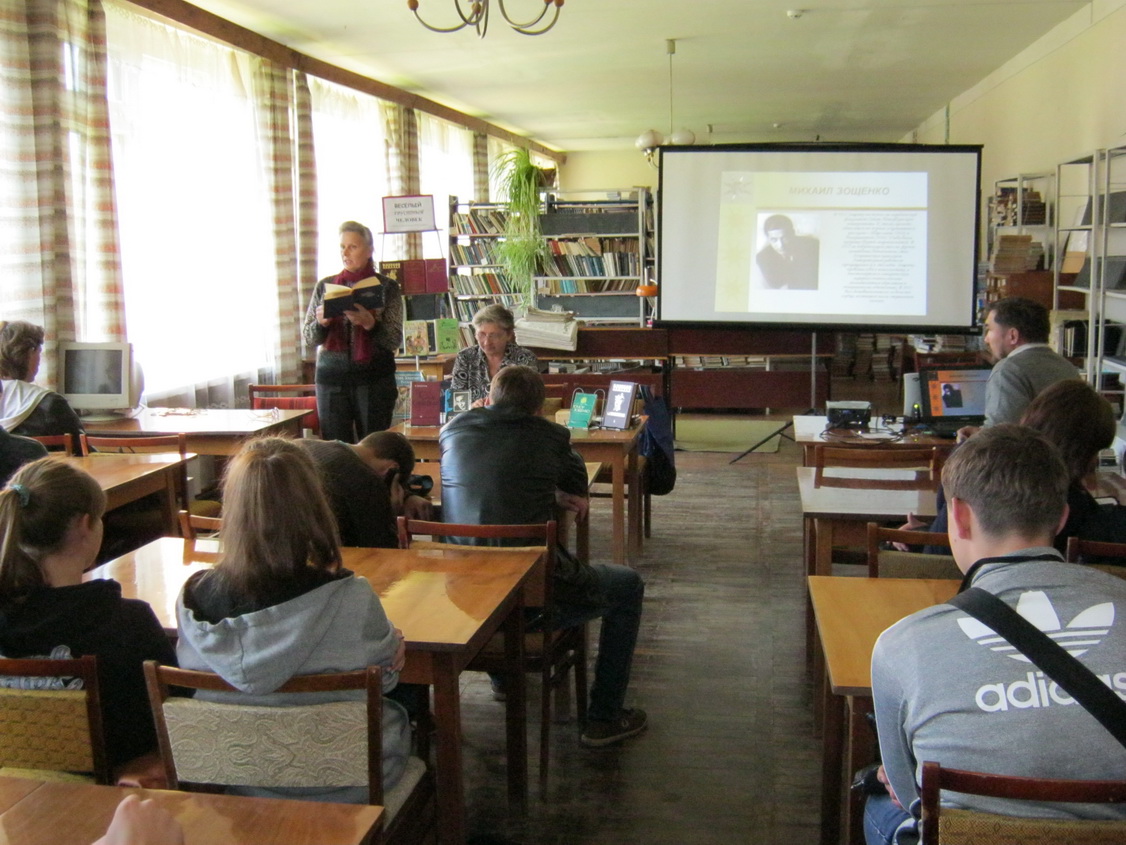 15 сентября сотрудники Демидовской центральной районной библиотеки Н. Прохоркина и Е. Никитина совместно с библиотекарем Демидовского аграрно-технологического техникума Н. П. Дуненковой провели литературный вечер «Веселый грустный человек», посвященный М.Зощенко.