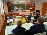 Ведущий библиотекарь Алла Викторовна Бобылева рассказала школьникам о тяготах мирных жителей в тылу и на оккупированных территориях, о подвигах пионеров – героев, о том, как сражались партизанские отряды, как воины советской армии освобождали нашу многострадальную землю от фашистов и в этом им помогали четвероногие друзья.