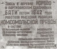 12 августа 1942 года в д. Корево Смоленской области вышел первый номер газеты «Комсомольская правда» выездной редакции в тылу врага при штабе смоленского партизанского соединения «Батя».