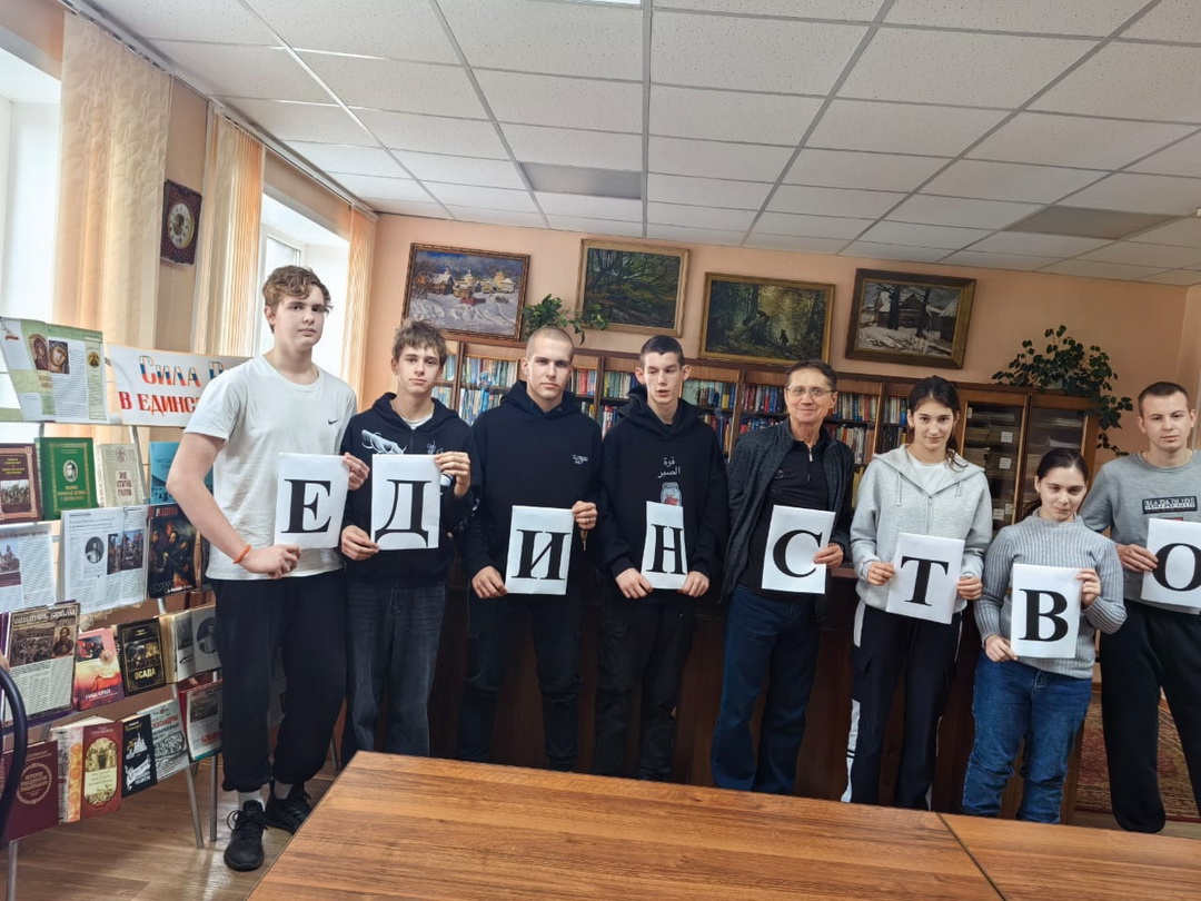 Библиотекари познакомили студентов с историческими событиями 1612 года, в память о которых был учрежден праздник. Узнали о событиях смутного времени, об освобождении Москвы от польских интервентов. О Кузьме Минине и Дмитрии Пожарском – героях народного ополчения, которые спасли единство русского государства. Ребята прочитали стихи.
