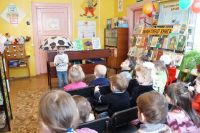 Заведующая библиотекой Хохрякова Елена Александровна поздравила гостей с праздником, рассказала историю его появления, познакомила с интересными фактами биографии Валентина Дмитриевича Берестова и представила имеющиеся в библиотеке его книги. Наши мальчики и девочки хорошо знакомы с творчеством этого замечательного автора. Мамы и папы, бабушки и дедушки читают им его добрые стихи и сказки.