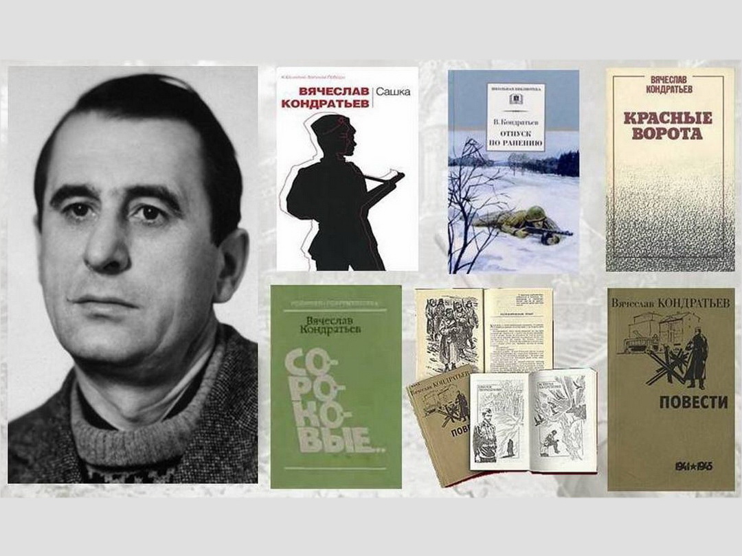 Вячеслав Кондратьев (30.10.1920 – 23.09.1993). Вячеслав Леонидович Кондратьев является представителем так называемой «лейтенантской прозы», хотя сам себя считал скорее писателем «окопной правды». Его произведения отличаются простотой слога, отсутствием пафоса и подчёркнутым вниманием к повседневному бытию солдата на фронте. Вячеслав Леонидович Кондратьев родился 30 октября 1920 года в Полтаве. Отец – инженер-железнодорожник, мама – библиотекарь.