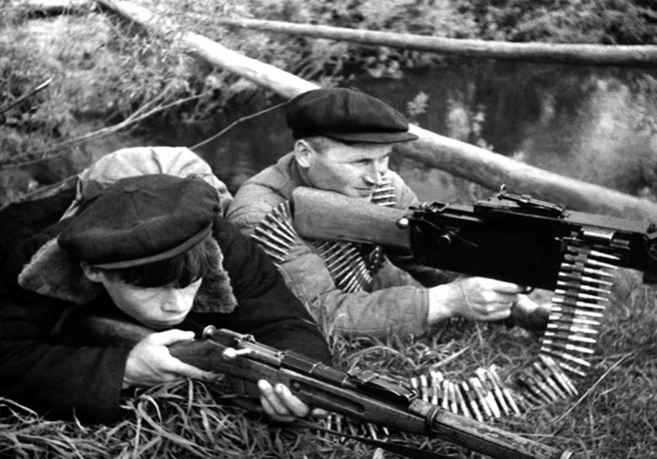 В борьбу с врагом здесь вступила уже не армия, а мирные люди, не мобилизованные, не обязанные воинским уставом, а по велению сердца, взявшие в руки боевое оружие. Это значило, что война принимала народный характер, становилась Великой, Отечественной.