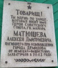 Решением Демидовского районного Совета депутатов Смоленской области № 23 от 19 марта 2015 года звание «Почетный гражданин муниципального образования «Демидовский район» Смоленской области присвоено Герою Советского Союза А. Д. Матюшеву.